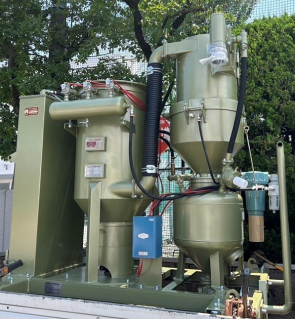 最新鋭の回収型バキュームブラスト機を導入しました。 橋梁等の構造物の老朽化の維持補修に塗装の塗り替えは欠かせません。 現在、塗装面について薬剤を使用した剥離とケレン(二種ケレン)作業により 鉄肌を暴露するケースが大半です。 問題として、鉛等を含んだ旧塗膜片の回収があります。 また、ケレン作業が作業者の技量に負うところが大きいという問題もあります。 一種ケレンとしてのバキュームブラストですが、弊社が導入したブラスト設備は、 グリットの鉄面への打ち付けと同時に塗膜片を回収する機能を有しており グリットの飛散・塗膜の飛散を防ぐことができるものです。 弊社4トンユニックにエアコンプレッサーと共に積載し、 工事現場に伺い作業を行う体制を整えております。